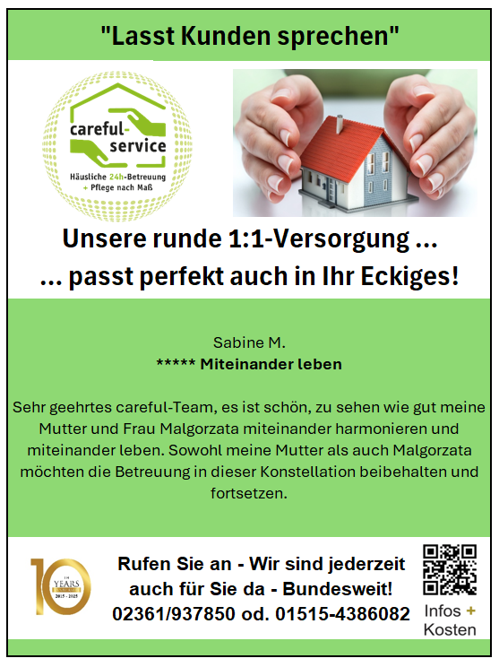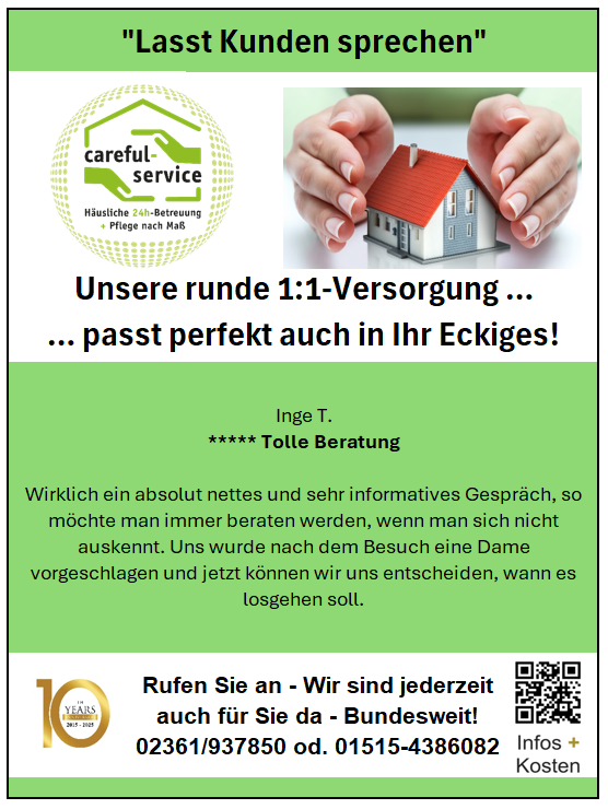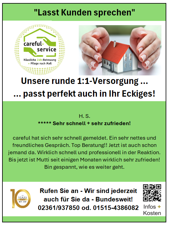 Unsere Kundinnen und Kunden und ihre Angehörigen wissen am besten, was gute Pflege ausmacht: ein offenes Ohr, Verlässlichkeit im Alltag, Respekt und ein Gefühl von Sicherheit. Ihre Rückmeldungen zeigen uns, dass Pflege weit mehr ist als Unterstützung – sie ist Beziehung, Vertrauen und echte Wertschätzung.
