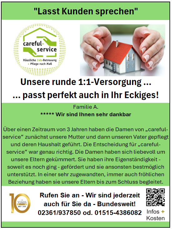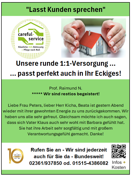 Wir danken allen Kundinnen und Kunden sowie ihren Angehörigen für ihr Vertrauen und ihre Offenheit. Ihre Worte sind für uns Anerkennung, Ansporn und Bestätigung zugleich.